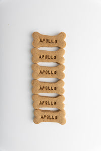 Introducing our newest creation: Custom Stamped Name Bones, the ultimate personalized treat for your beloved furry friend! Indulge your pup with their very own name stamped on our delicious Signature bone flavors: Peanut Butter, Strawberry, or Blueberry. Each bone measures a delightful 3 inches long, perfect for small to medium-sized dogs. With room for names up to 10 characters, you can truly make it uniquely theirs. Available in convenient 12 or 24 packs, these treats are not only tasty but also a delightful way to show your pup some extra love. Treat your dog to a tail-wagging experience they'll adore.